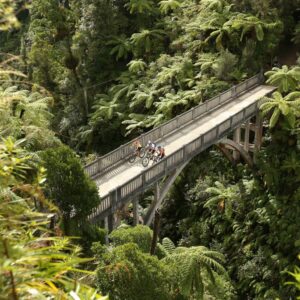 Stellen Sie sich eine Straßenbrücke aus Beton vor, die tief im dichten Wald des Whanganui-Nationalparks liegt und lächerlich deplatziert wirkt. Auf beiden Seiten gibt es keine Straße. Keine Anzeichen von Bauwerken oder Zivilisation. Es ist wahrhaftig die “Brücke ins Nirgendwo”.  Und es gibt eine interessante Geschichte zu erzählen.