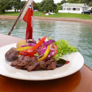 Von der Paihia Wharf aus fahren Sie hinaus in die Bay of Islands und weiter nach Opua und Okiato. Auf dem Weg zur Kororareka Oyster Farm passieren Sie das Omata Estate Vineyard. Das Mittagessen wird serviert, während das Schiff in Richtung Russell abbiegt, und Sie können von Bord gehen oder nach Paihia zurückkehren. Gehen Sie an Bord der speziell angefertigten Ratanui”, lehnen Sie sich zurück und entspannen Sie sich, während Darryls freundliche Crew sich in den nächsten 2,5 Stunden um Sie kümmert.