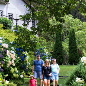 Auf den gewundenen Pfaden, die in den Hang geschnitten sind, finden Sie stattliche Bäume, laubabwerfende Ahorne, Rotbuchen und Mammutbäume. Außerdem gibt es eine beeindruckende Sammlung von Rhododendren, Azaleen und Hortensien. Sir Russell hat die Pflanzen, die Sie heute sehen, sorgfältig gepflanzt.